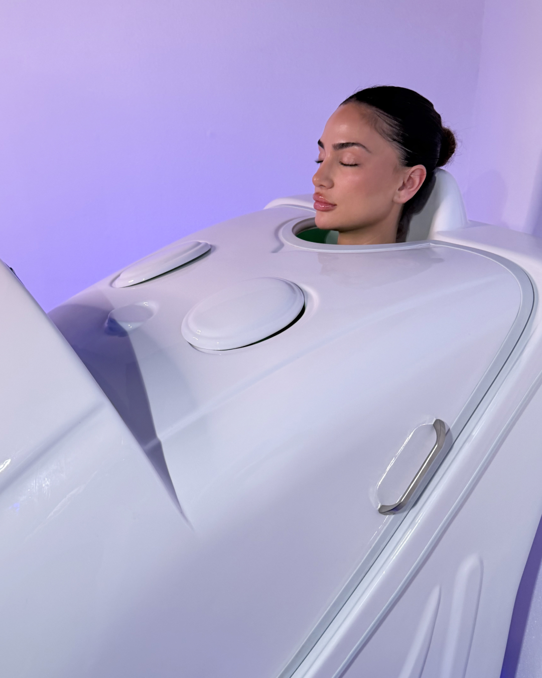 You’ll sit comfortably in a private steam pod for about 15–20 minutes as warm ozone-infused steam surrounds your body. The experience feels gentle and soothing — your head stays outside the capsule so you can breathe normally and relax.